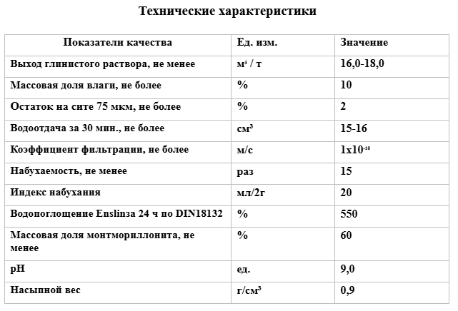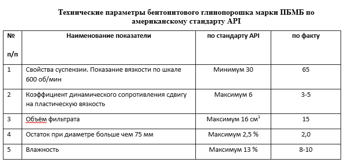 Лабораторные испытания бентонитовый глинопорошок данной марки показали, что его средний расход на приготовление бентонитовых суспензий составляет 30 кг на 1 м3 раствора.
